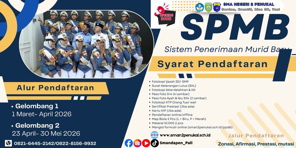 4. Pendaftaran ONLINE bisa dilakukan secara mandiri dirumah atau bisa datang ke Sekretariat SPMB SMAN 2 PENUKAL di Ruang Laboratorium Kimia
